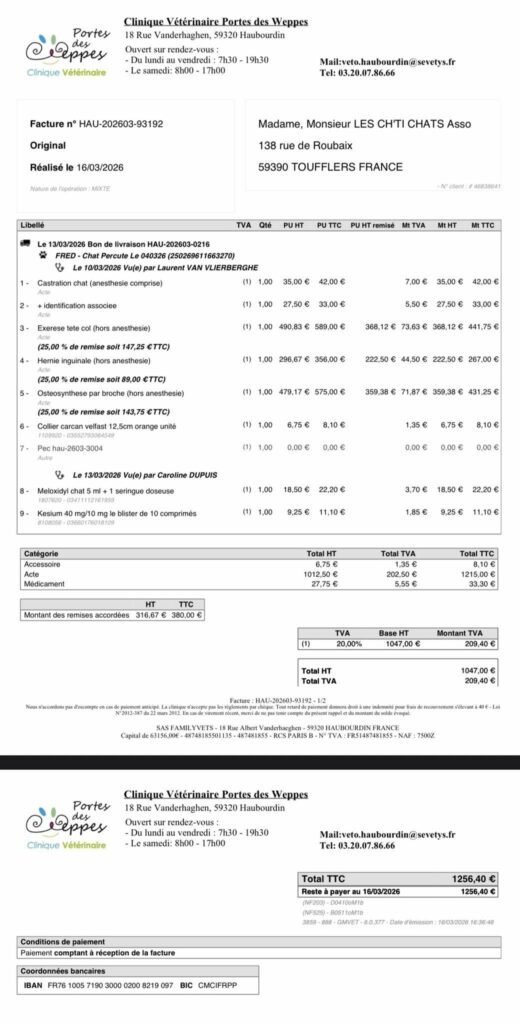 Mais cette prise en charge a un coût très important, et les frais vétérinaires qui en découlent ont de lourdes conséquences financières pour l’association.