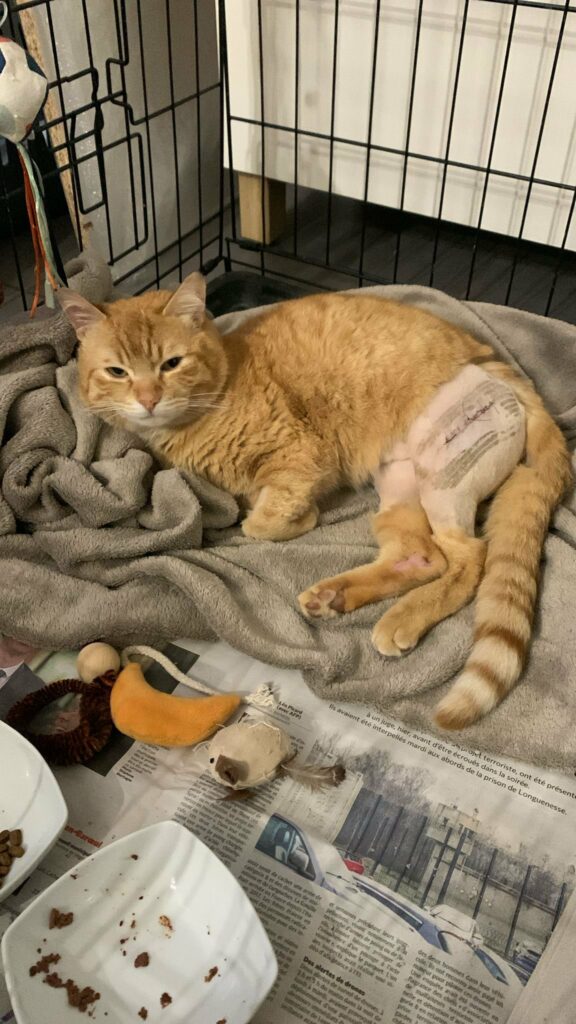 Nous avons récemment recueilli Fred, un chat victime d’un accident de la route après avoir été percuté par une voiture.